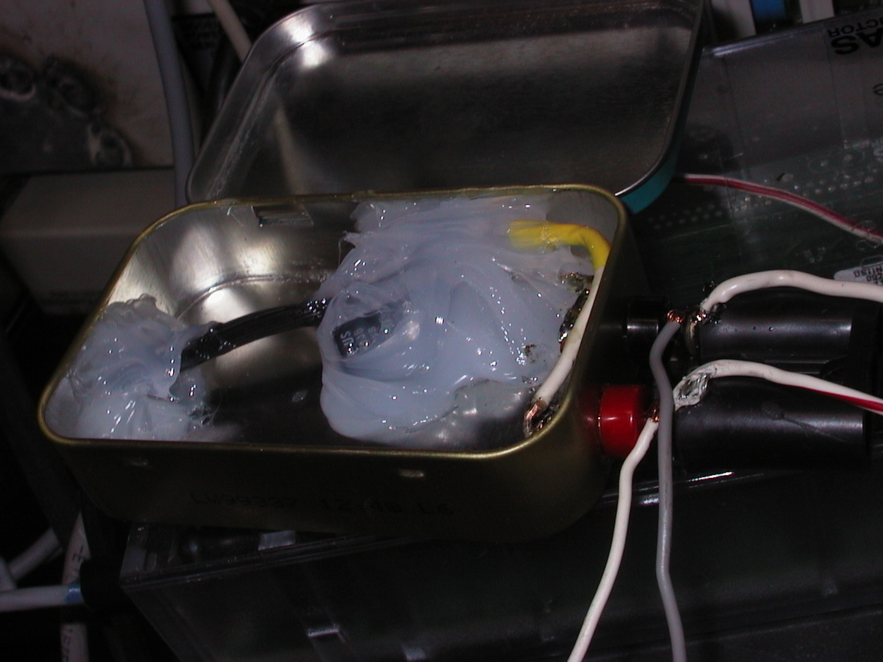 The electronics aren't quite visible through the "transparent" silicone, but it keeps the wires from touching each other, and holds the input wire securely in case it gets yanked.