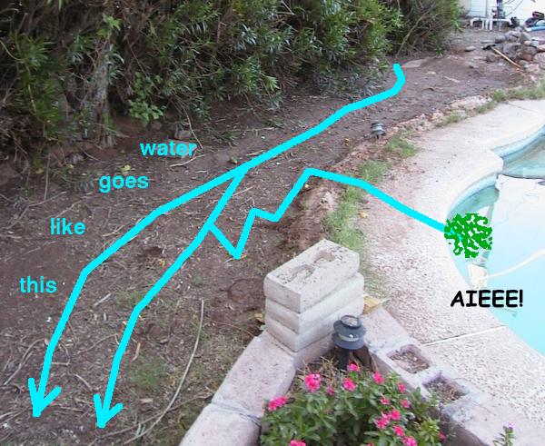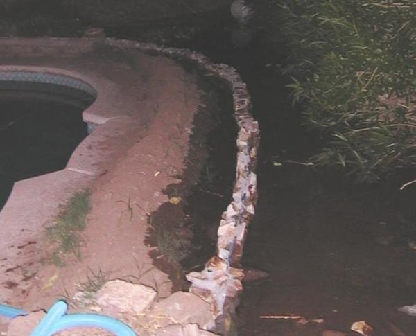 Iryna and a very good friend and I have been building one over the last few weeks. I got all carried away and decided it needed some conduit for low-voltage lights later on (I want to use LED's to bottom-light some glass sculptures, or something like that) and the space between the wall and pool needs to be a flowerbed, consequently we'll need a little gate so we can use some of the irrigation water to water it. And it must be made from stone, so as to take as long to build as possible.